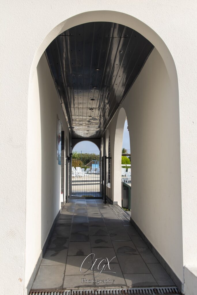 Le petit tunnel qui mène à la porte sécurisée pour enfants, pour entrer vers les 2 piscines…