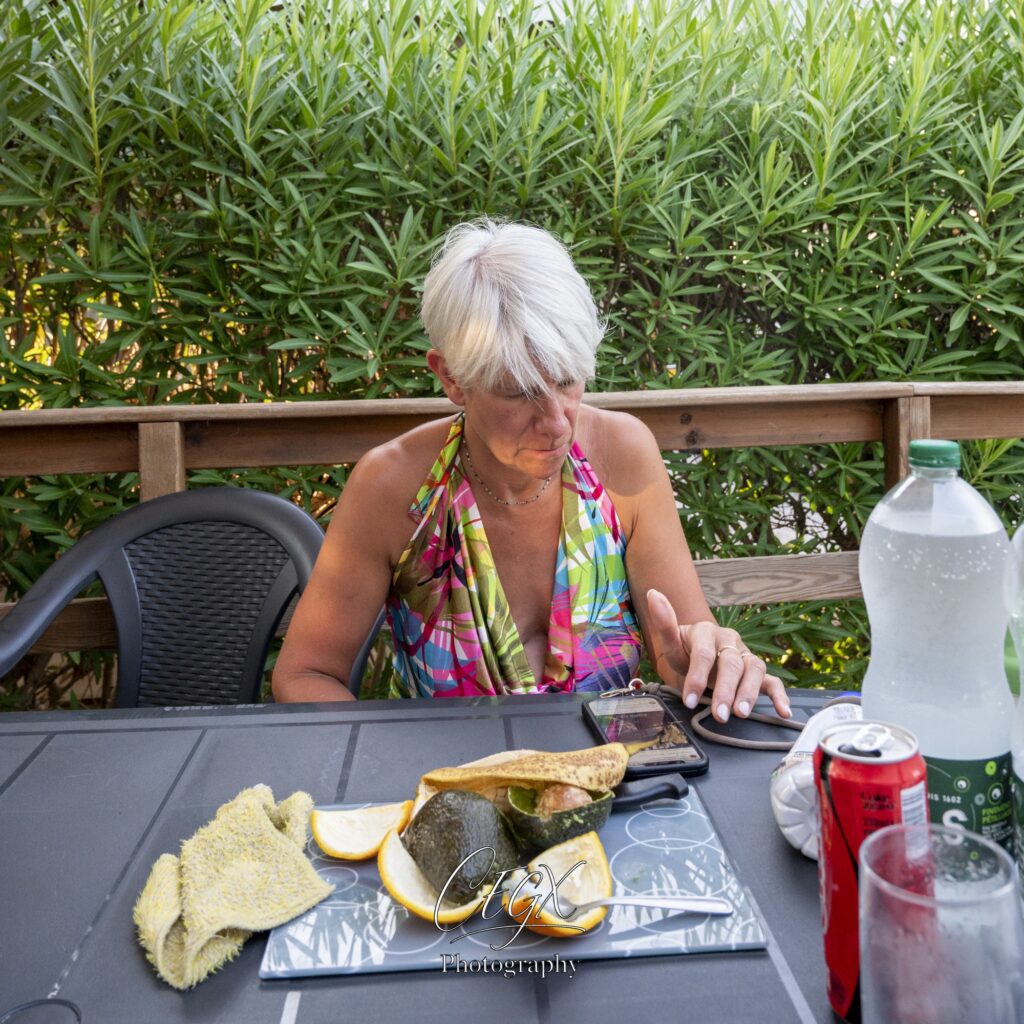 Xavier occupé… A… Traiter les photos le matin, car ensuite… C’est mode repos, lecture et bronzage… Mode toute la journée évacuation du stress…